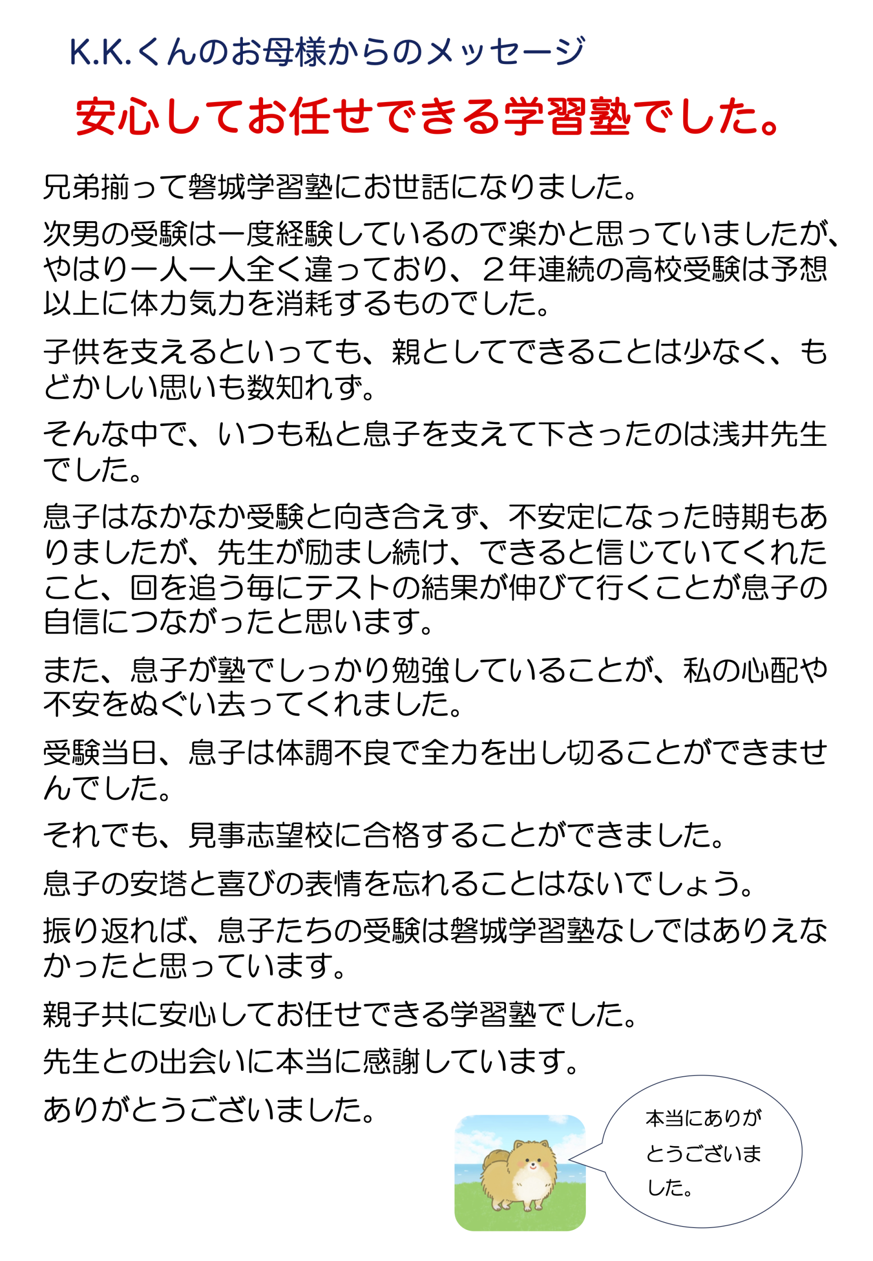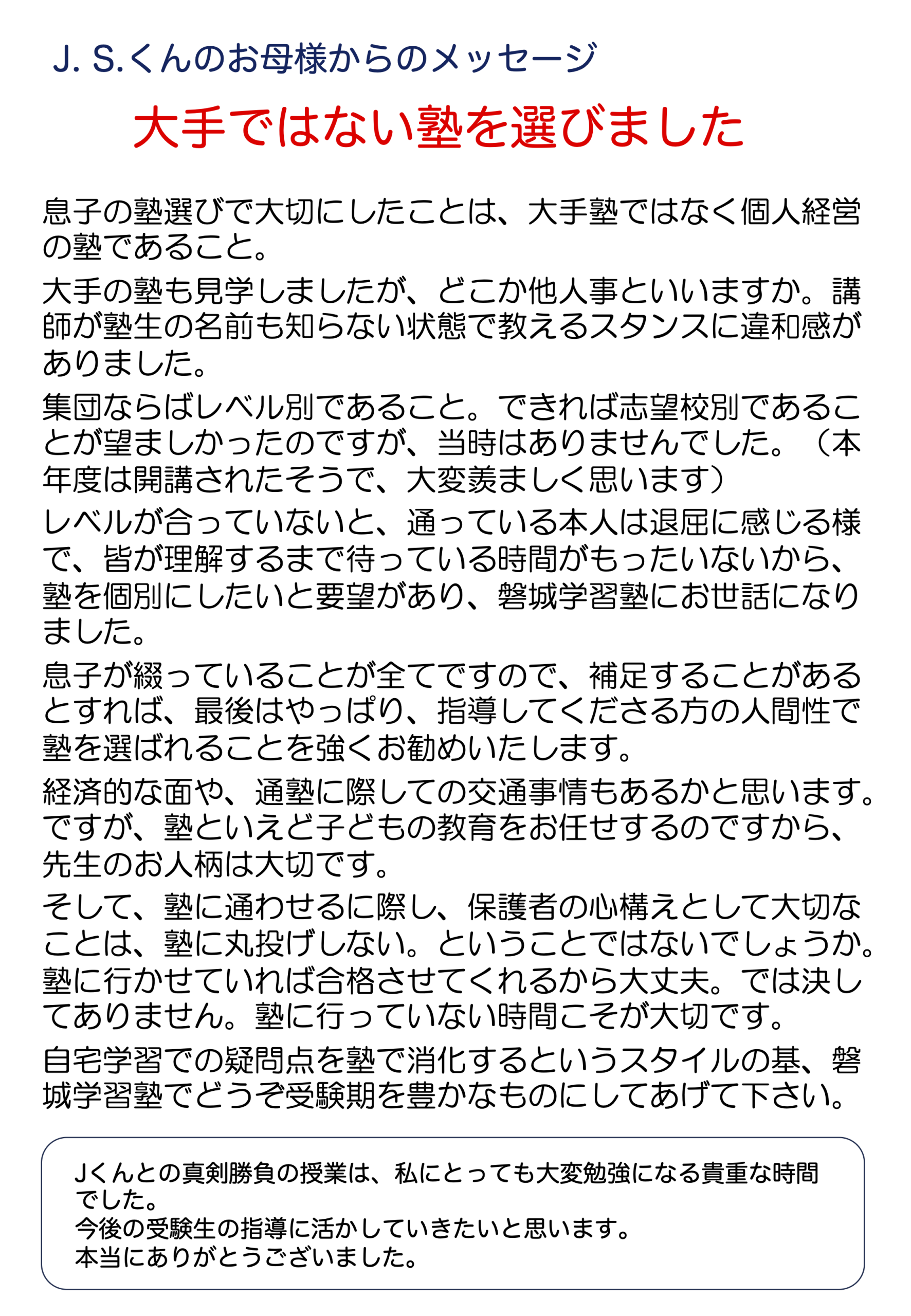 ぜひ「受験」を自分を伸ばす大きなチャンスととらえて、挑戦してほしいと思います。